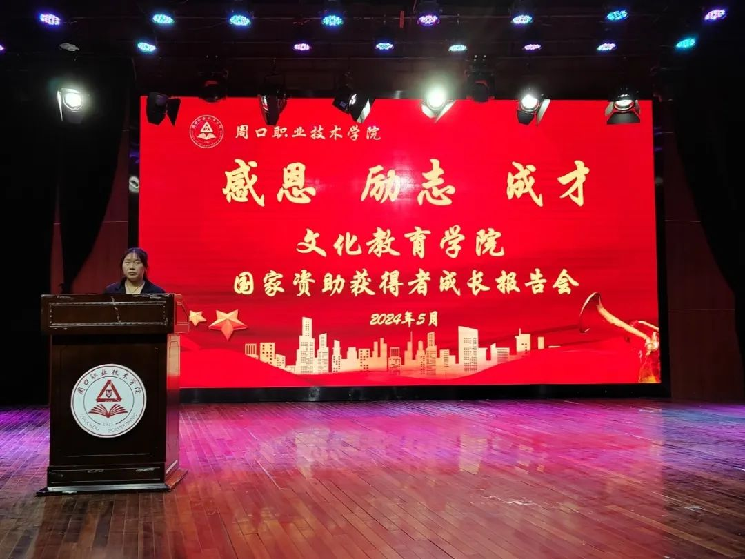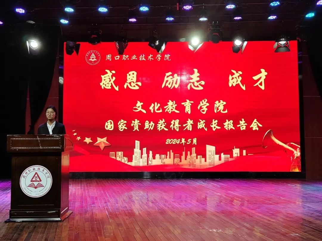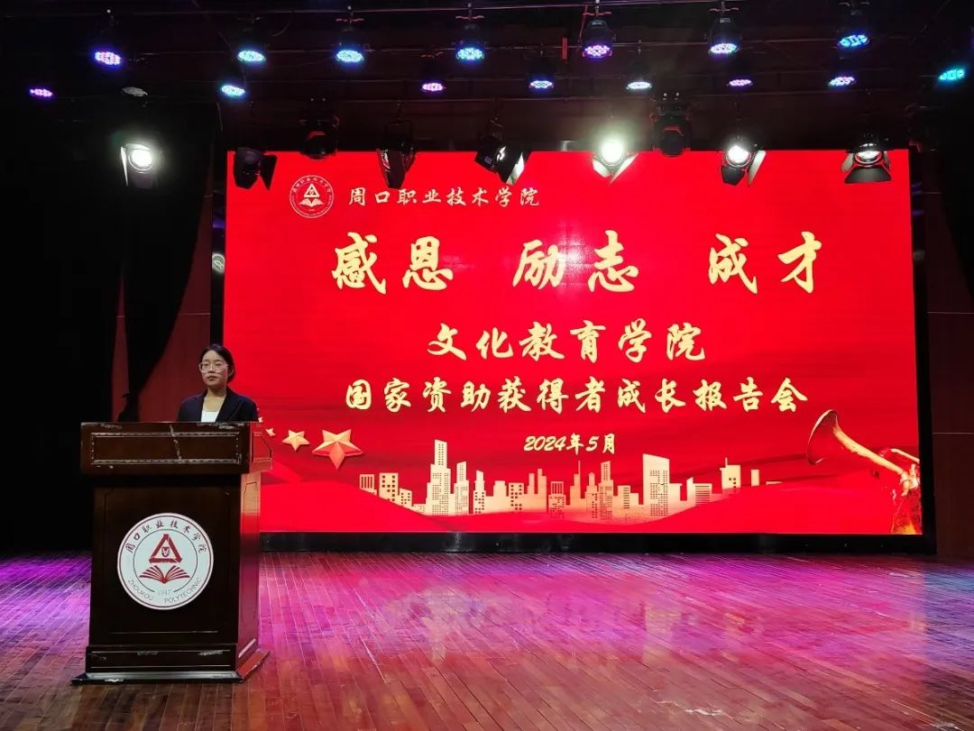 为落实立德树人的根本任务,激励当代大学生志存高远、奋发图强,争做有理想、敢担当、能吃苦、肯奋斗的新时代好青年,5月9日下午,文化教育学院在砺德厅召开国家资助获得者成长报告会。