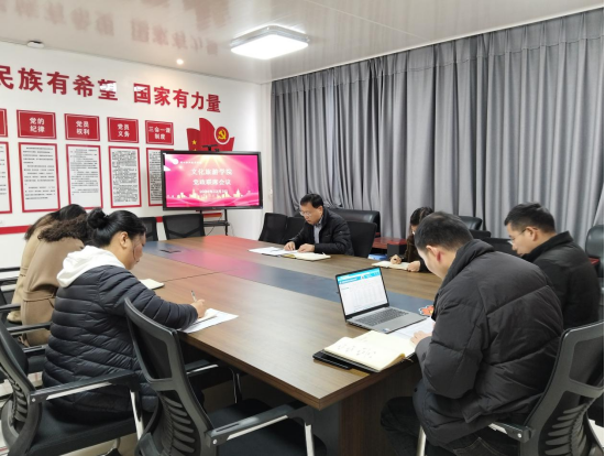 12月3日上午,17c.com.com在五区党员活动室召开党政联席会议,传达近期学校会议精神,研究部署近期重点工作。党总支书记展贤东、院长史丽珍,副院长于慧娟、李炯,学管办主任普俊、教务办主任马淼、综合办主任石永丽参加会议。会议由展贤东主持。