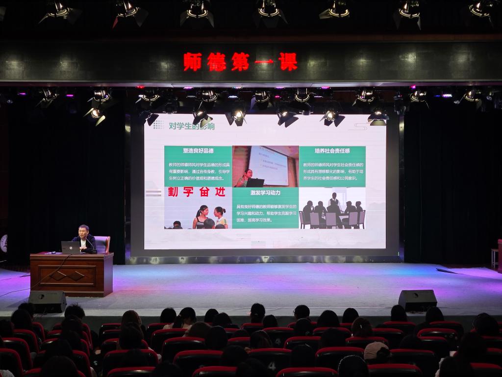 普俊以“立师德,正师风,做新时代好老师”为题,首先讲述了树立正确的师德师风可以给学生塑造良好品德、培养他们的社会责任感,激发学生的学习动力。同时对教师职业发展也有深远影响,它不仅可以提高教师的职业素养,还可以增强教师的职业认同感、促进教师职业生涯发展。紧接着,普俊从爱国守法、爱岗敬业、关爱学生,为人师表四个方面指出教师应具有的职业道德。在讲解过程中,普俊结合大量生动鲜活的案例,深入剖析了当前师德师风建设中存在的问题及应对策略。通过讲述孔子、韩愈、于漪等古今教育楷模的先进事迹,激励同学们将来以他们为榜样,坚守教育初心,无私奉献,努力成为有理想信念、有道德情操、有扎实学识、有仁爱之心的“四有”好老师。同时,他还对一些违反师德师风的典型案例进行了分析,提醒同学们要引以为戒,时刻保持警醒。