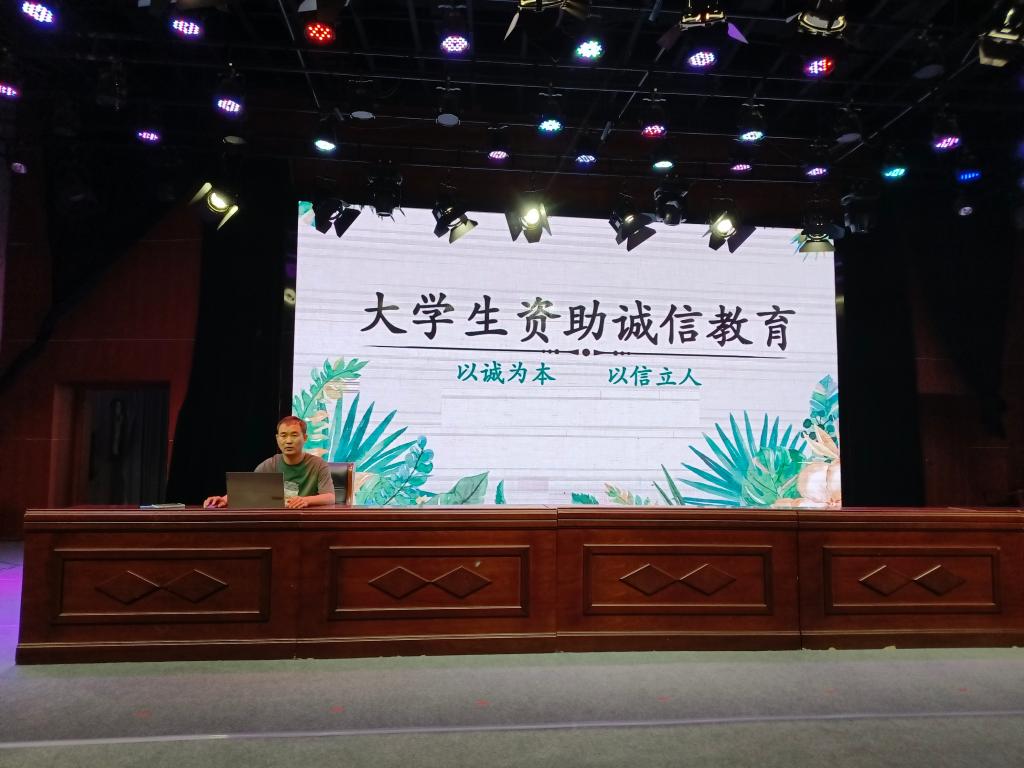 为深入贯彻国家资助政策,强化大学生的诚信意识,将诚信教育与资助工作紧密结合,营造诚实守信的校园文化氛围。周口职业技术学院17c.com.com于6月3日在开元校区砺德厅召开大学生诚信资助宣讲活动。活动由学管办主任普俊主持。