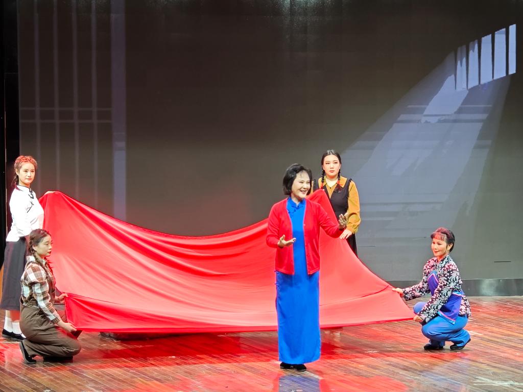 现代豫剧《江姐》共分为1956年冬重庆朝天门码头、两年后华蓥山下川北某县城外、华蓥山游击队驻地、川北某县城郊、川北某县城游击队联络站、中美合作所渣滓洞集中营女牢等六个部分。从被捕入狱到面对敌人的严刑拷打,再到与狱友们共同绣制红旗的坚定信念,每一个情节都充满了震撼人心的力量。江姐作为全剧的核心人物,她的形象被塑造得尤为丰满和立体,同时也使得江姐这个人物更加真实可信,也让观众在情感上更加容易产生共鸣。这种独特的情感共鸣,不仅让同学们在情感上得到了极大的满足和慰藉,也让他们在思想上产生了深刻的思考和启迪。
