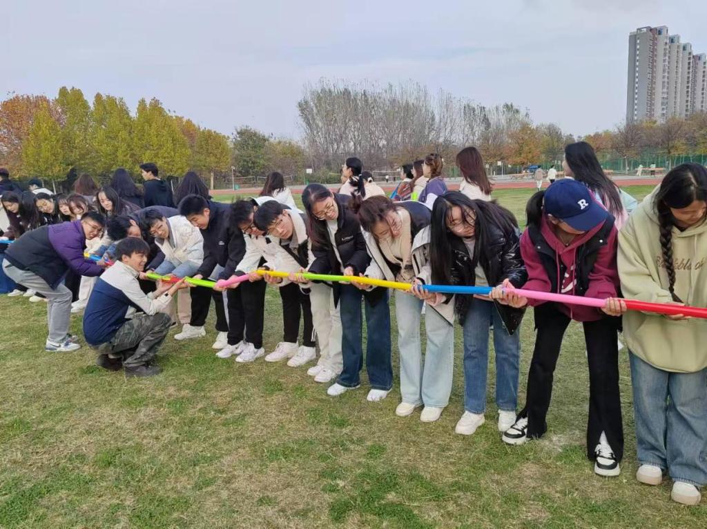 本次团建活动设置了不倒森林、不要“做”挑战、抢板凳、默契传球等项目,不仅考验了学生的团队协作能力,也极大地激发了他们参与游戏的热情,使得整个操场变成了一片欢乐的海洋。