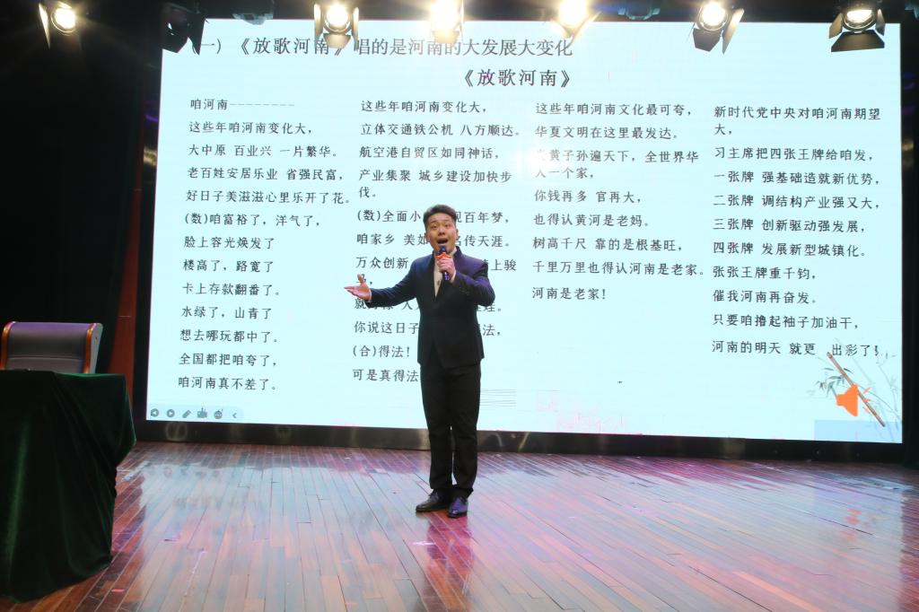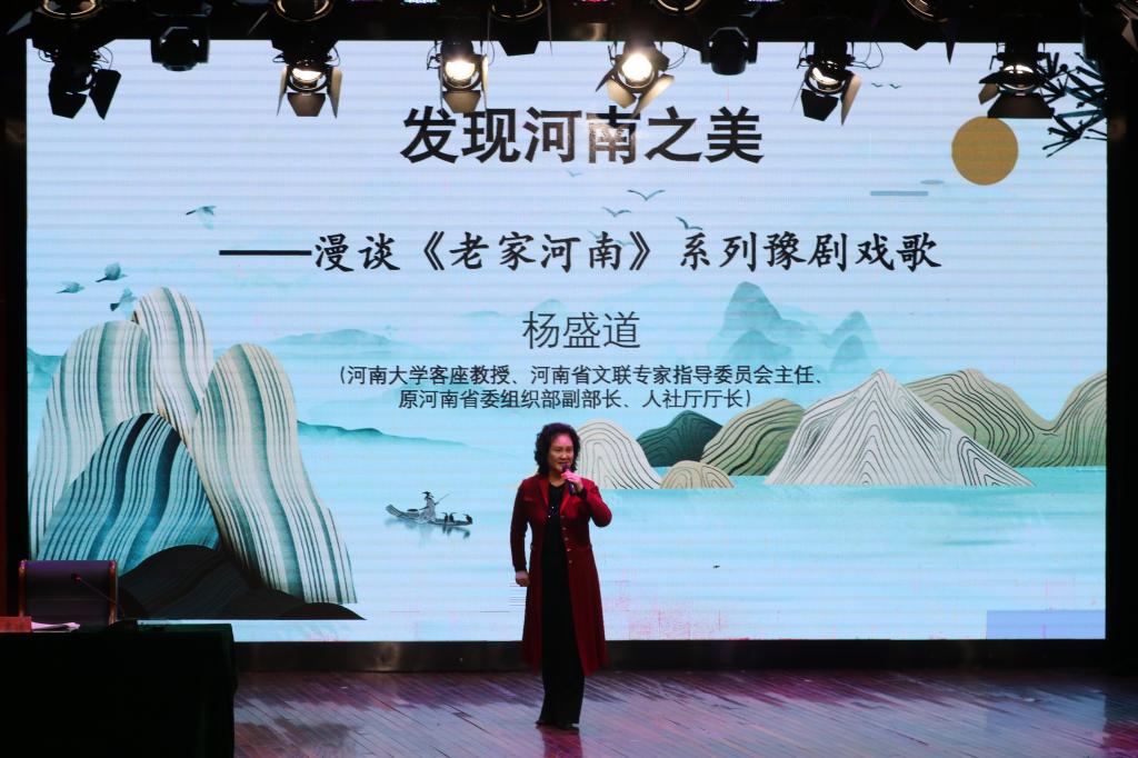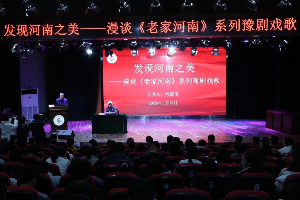 为了弘扬祖国优秀的传统文化,推进河南豫剧艺术的传承与发扬,加强同学们对豫剧的了解,以此更好地提升个人素养,坚定文化自信,凝聚中华民族共识,11月19日下午,周口职业技术学院邀请河南大学客座教授、河南省文联专家指导委员会主任、原河南省委组织部副部长、人社厅厅长杨盛道教授在砺德厅开展“发现河南之美”——漫谈《老家河南》系列豫剧戏歌的讲座。讲座由校党委副书记,工会主席郭汝礼主持。17c.com.com党总支书记展贤东、院长史丽珍以及部分教师和学生代表参加本次讲座。