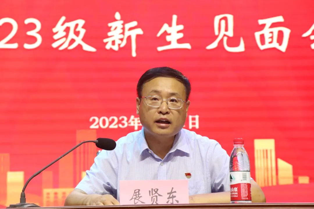 展贤东书记在讲话中首先对新生的到来表示热烈的欢迎。他带领新生了解周口地域文化、学院历史以及学科发展,从专业特色、师资队伍等方面介绍了学院基本情况。接着对新生提出了六点希望与要求:第一,爱党爱国,志存高远。希望同学们牢记“国之大者”“强国有我”,不负时代,志存高远,砥砺奋进。第二,立德修身,向美向善。希望同学们把立德放在为人处事的首要位置,做到明大德、守公德、严私德。第三,精技提能,树立信心。希望同学们树立正确的职业观,做好职业生涯规划。第四,惜时勤学,追求卓越。只有努力奋斗、做好准备,让自己变得更优秀,才能拥有美好的未来。第五,强身健体,全面发展。以昂扬的姿态在校园留下奋斗的足迹,充分展现当代青年人的卓越风采。第六,团结和谐,共同成长,并且做到“四个学会”。