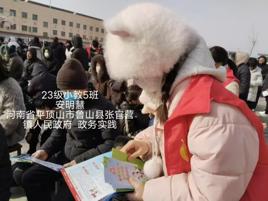 读万卷书不如行万里路,理论知识固然重要,但亲身实践、体验获得的知识和感悟会更加深刻,理论终归要用在实践中方能发挥其最大作用。因此,在校团委和郸城县委的号召下,我参与了“返家乡”寒假社会实践活动,在郸城县福星社区信访接待大厅切身走入到群众中去。在接待大厅,来访群众的诉求各不相同,我要做的就是认真倾听、耐心询问、切实登记,做到上传下达,把群众的问题落实到位。同时,此次实践我找准了自己的定位,明确了努力的方向。未来,我希望能参与更多实践,不断成长,为社会贡献力量。